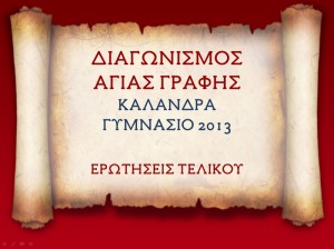 Κατά την γνώμη μου πρόκειται για έναν πολύ πρωτότυπο, παιδαγωγικό και συνάμα ανταποκρινόμενο στις σύγχρονες απαιτήσεις των παιδιών Διαγωνισμό Αγίας Γραφής.