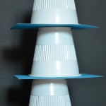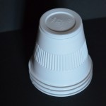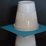 Υλικά: 3 πλαστικά ποτηράκια, 2 τετράγωνα κομμάτια χαρτόνι