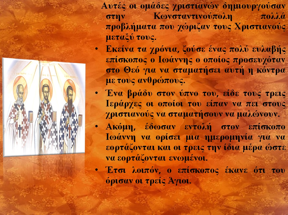 Προβολή διαφανειών για τους Τρεις Ιεράρχες, τους προστάτες των γραμμάτων. Κατάλληλη για παιδιά Δημοτικού.
