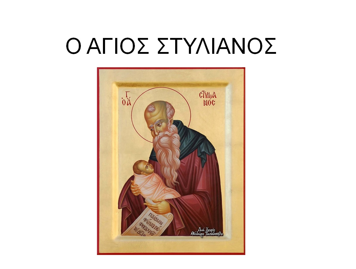 Μικρή προβολή διαφανειών που παρουσιάζει συνοπτικά τον βίο του αγίου Στυλιανού. Κατάλληλη για παιδιά Δημοτικού.