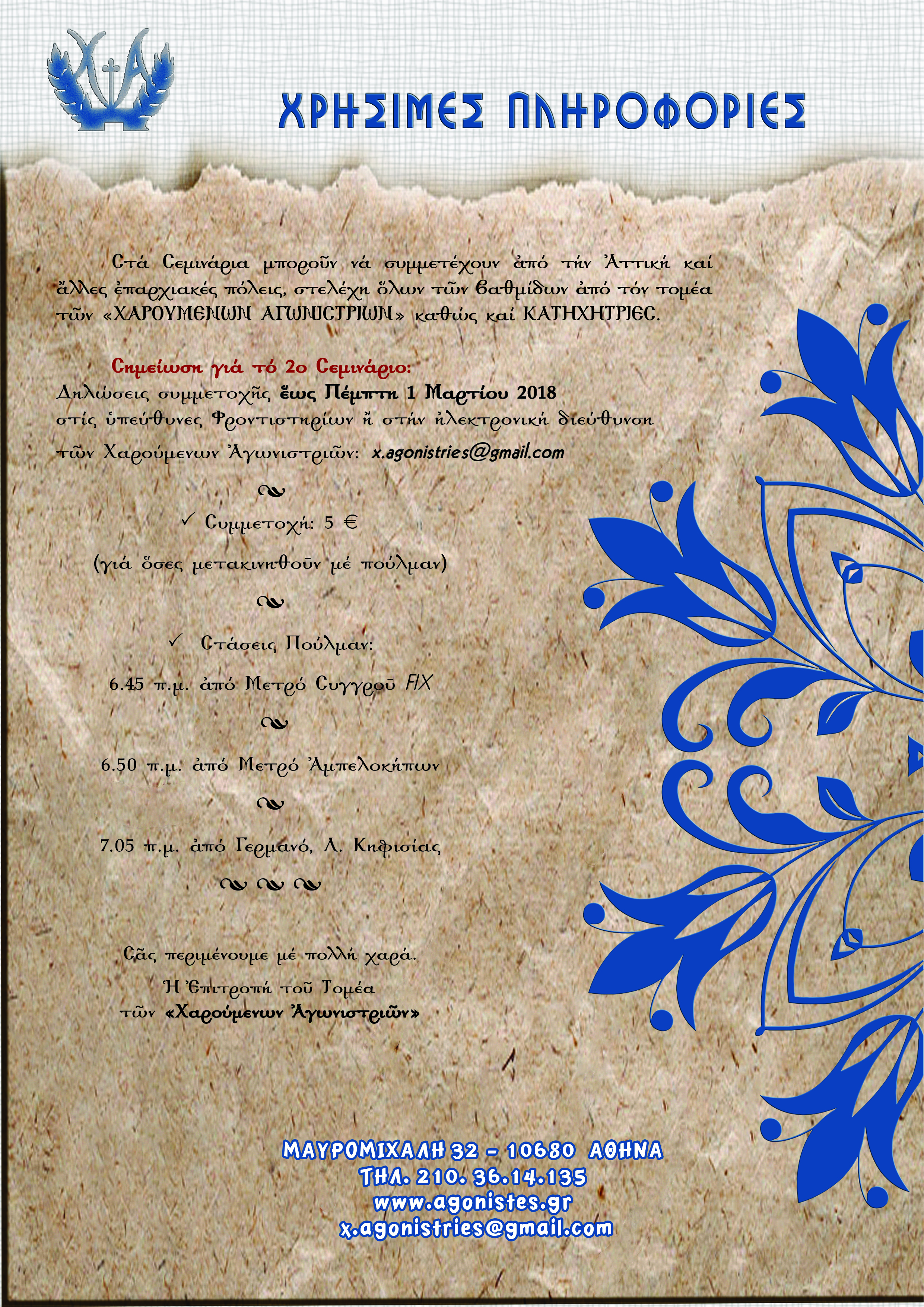 Περισσότερες πληροφορίες για το πρόγραμμα των σεμιναρίων (τόπος, μέρα, ώρα) και τις δηλώσεις συμμετοχής υπάρχουν στο αρχείο που ακολουθεί.